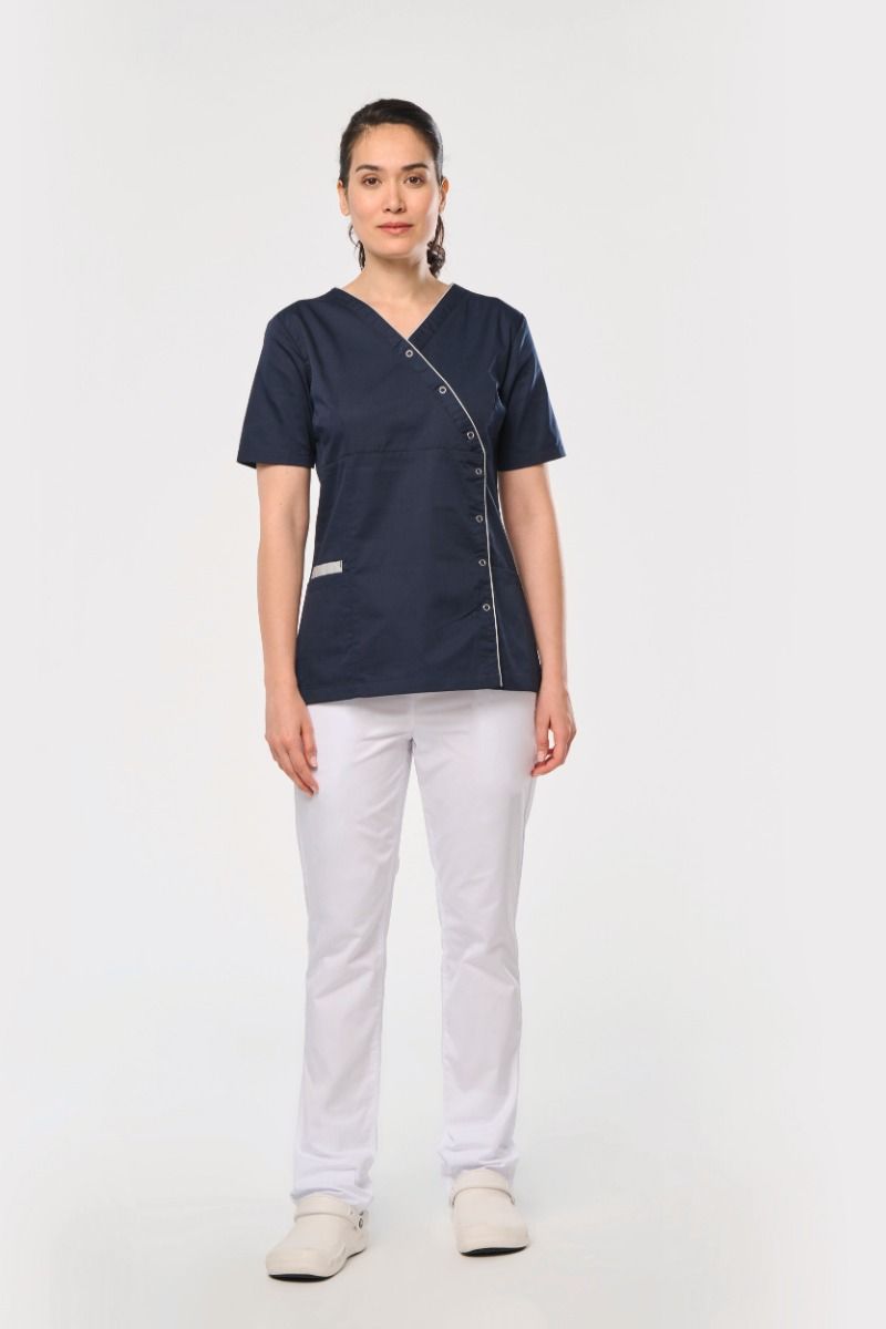 | Omschrijving | 65% polyester / 35% katoen. Twillstof. Norm ISO 15797 Industrieel wassen 75 °C (20 wasbeurten). 2 Italiaanse zijzakken + 1 opgezette achterzak met verstevigingen. Elastische tailleband met aanrijgkoordjes aan de binnenkant. Tear-away merklabel. |