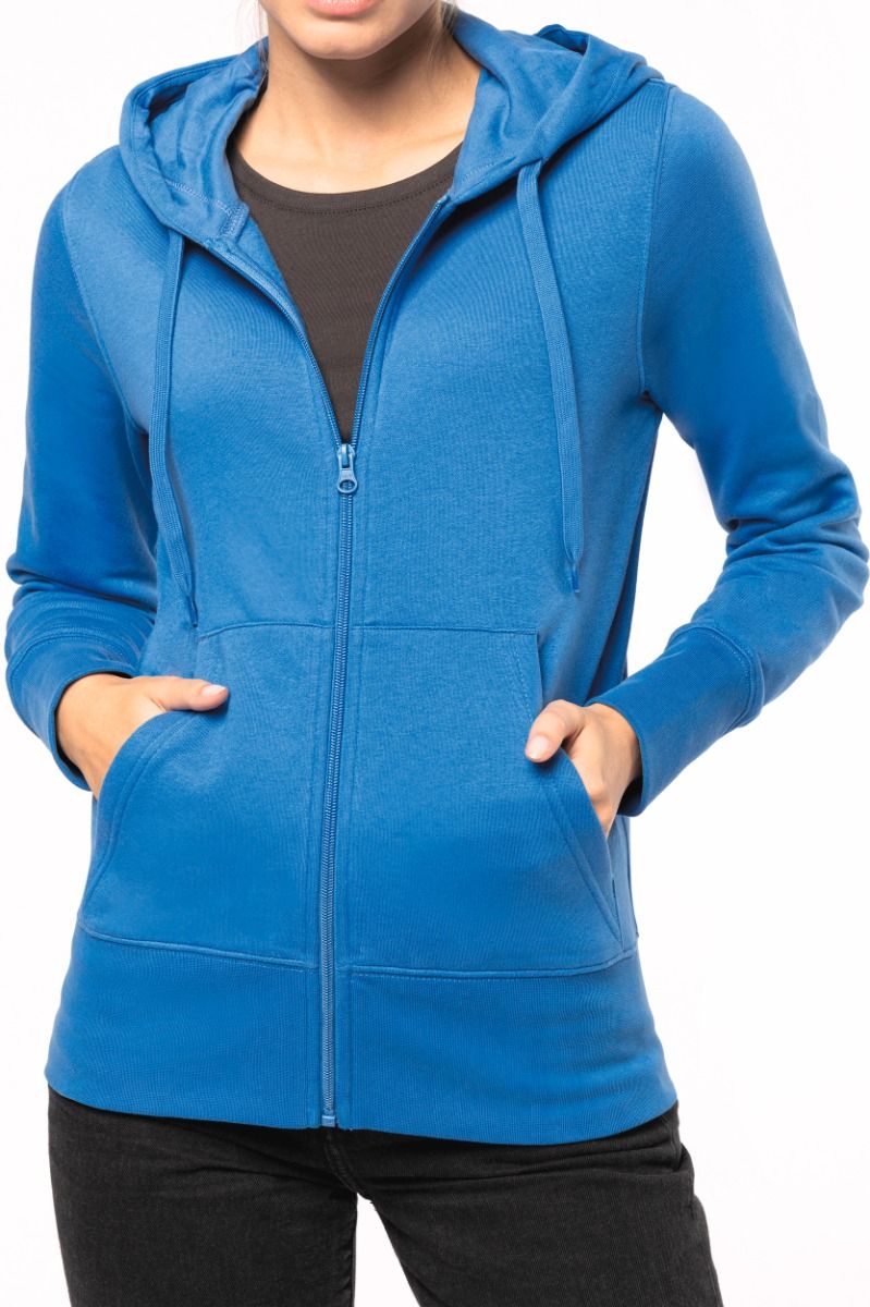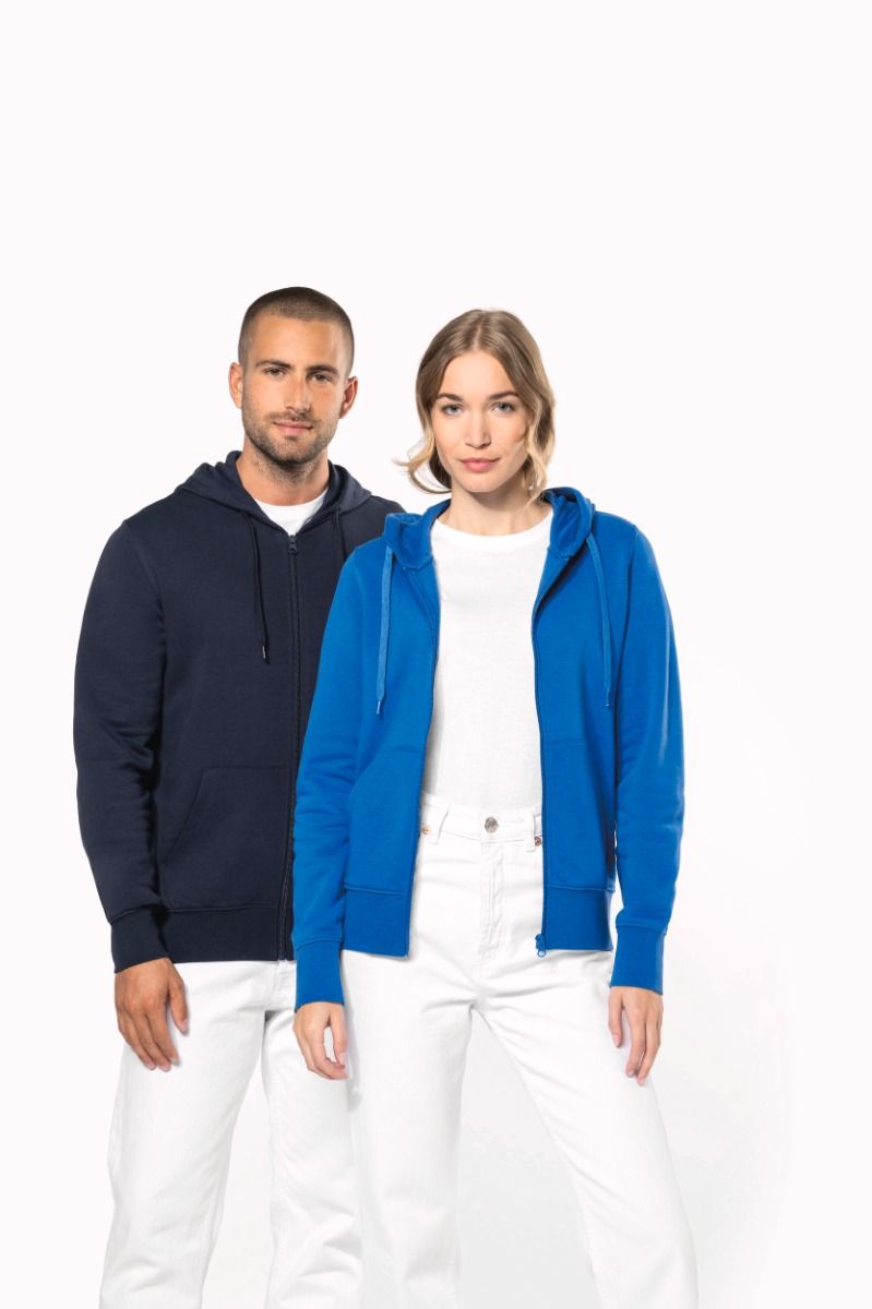 | Omschrijving | 85% katoen / 15% polyester. Gemaakt van 85% biologisch katoen en 15% gerecycled polyester. Het GOTS-label (Global Organic Textile Standard) wordt afgeleverd door Ecocert Greenlife. Geborsteld fleece 3 draden LSF (Low Shrinkage Fleece) aan de binnenkant. Gekamd katoen. Enzymgewassen. Rechte snit. Kangoeroezakken. Ritssluiting in ton-sur-ton nylon. Gevoerde capuchon 100% katoen, jerseykatoen 180 g. 1x1 ribboord in buisconstructie voor een betere afwerking aan de mouwuiteinden en de onderkant. Nektape in ton-sur-ton jersey en halvemaanvormige afwerking aan de binnenkant van de kraag. Afwerking dubbel stiksel aan mouwuiteindenn, onderkant en hals. Geen merklabel in de kraag, maar enkel een maatlabel voor eenvoudige personalisatie. |