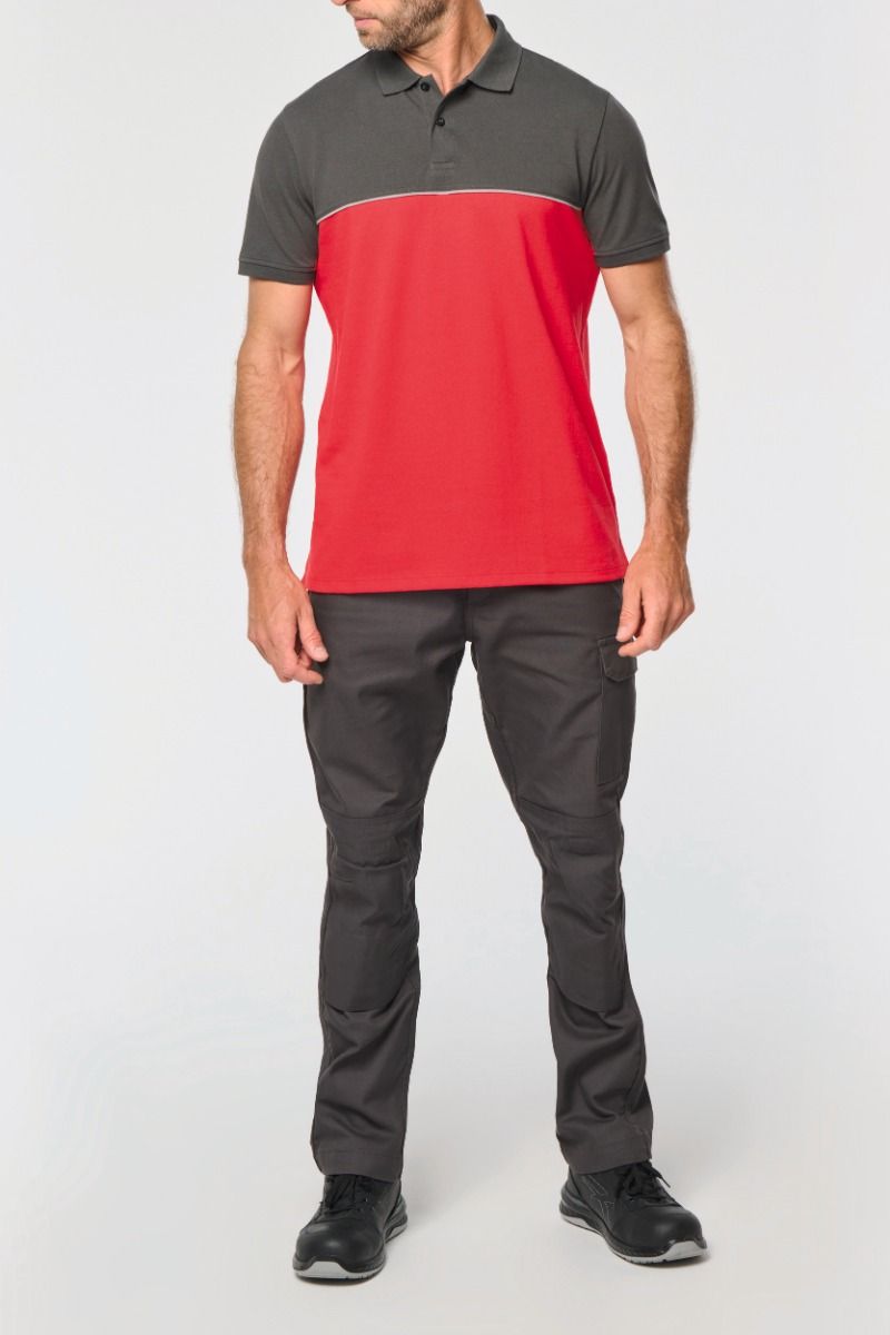 | Omschrijving | 60% katoen / 40% polyester. Gemaakt van 60% gekamd katoen en 40% gerecycleerd polyester. Vortex-garen. Piquétricot. Anti-pluisbehandeling. Wasbaar op 60 °C. Fitted pasvorm. Toon-op-toon lijst met 2 knopen. Kraag in 1x1 ribboord met contrasterende nektape met visgraatmotief.Contrasterende bies tussen de tweekleurige delen van het kledingstuk (lichaam, voorkant mouwen en rug). Afgewerkt met ribboord aan de mouwuiteinden. Zijsplitten met contrasterend visgraatmotief. Afwerking met dubbel stiksel onderaan. Tear-away merklabel. |
