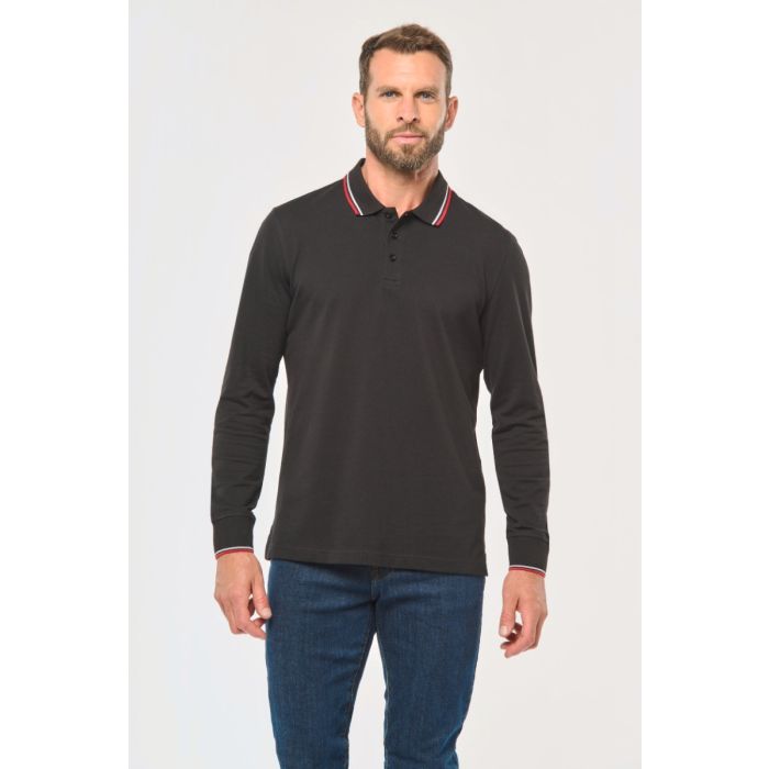 Heren polo van piquétricot met lange mouwen