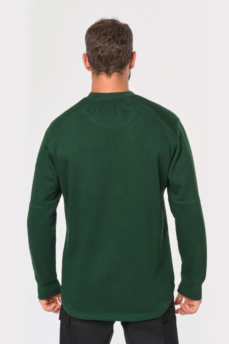 | Omschrijving | 80% katoen / 20% polyester. Fleece 3 draden met LSF-behandeling (Low Shrinkage Fleece). Wasbaar op 60 °C. Ronde hals en mouwuiteinden in ribboord. Onzichtbare ritszak rechterzijkant. Versteviging op de schouders en ellebogen. Penhouder op de linkermouw. Halvemaanvormige afwerking op de achterkant. Ophanglus in de kraag. Afwerking met dubbel stiksel onderaan en verlengd achterpand voor meer comfort. Gecertificeerd STANDARD 100 by OEKO-TEX®N° CQ 1007/7, IFTH. |